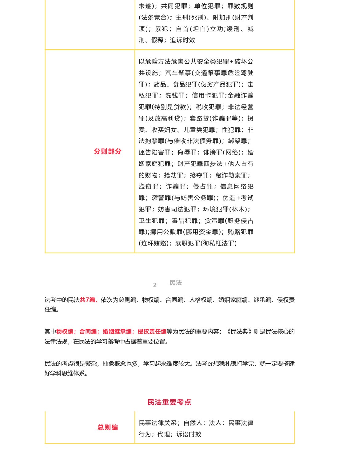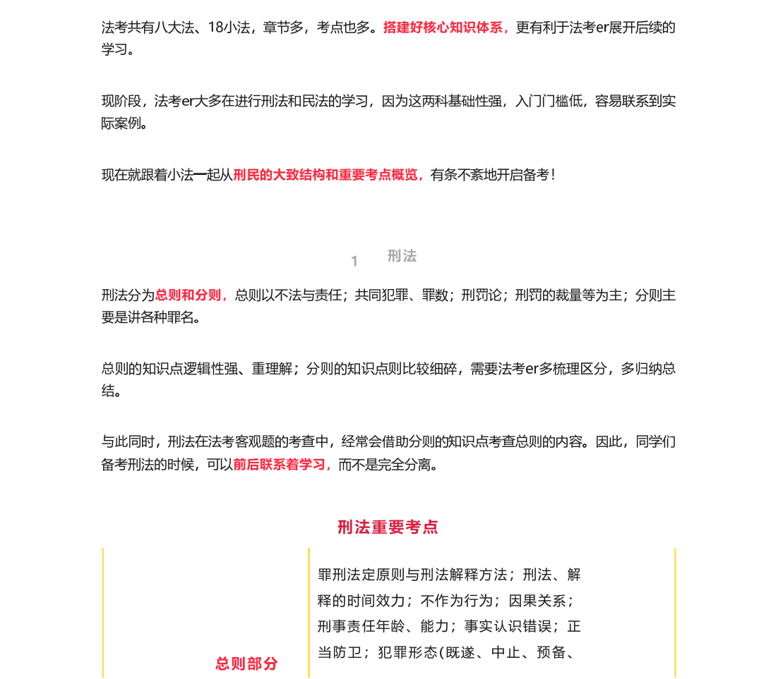 现在就跟着小法一起从刑民的大致结构和重要考点概览,有条不紊地开启备考!
