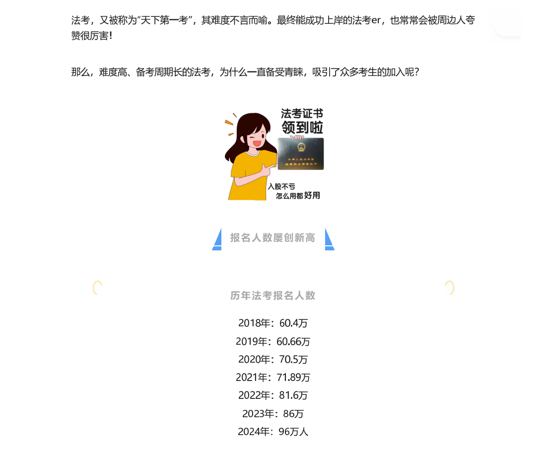 难度高、备考周期长的法考,为什么一直备受青睐,吸引了众多考生的加入呢?