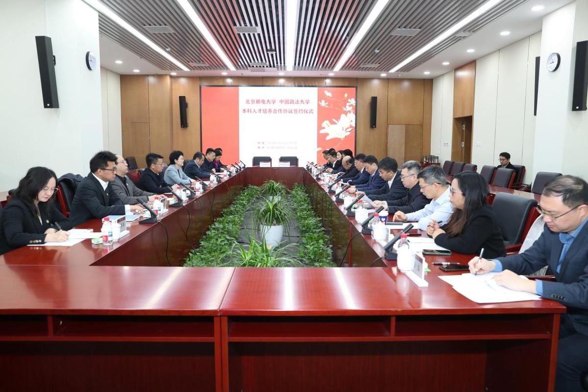 姜泽廷向北京邮电大学一行表示欢迎与感谢。他表示,北京邮电大学在信息科技领域实力雄厚,中国政法大学在法学教育领域处于领先地位,此次合作充分发挥双方优势,共同推进“法工融合、文工交叉”的深入实践,是顺应时代发展的创新之举,也是服务国家战略的重要举措。希望双方切实落实合作协议,共同推进智慧法学人才培养。一是聚焦提高拔尖创新人才的培养能力。构建跨学科课程体系、整合师资资源、提升实践创新能力、完善评价与激励机制等,优化人才培养模式。二是围绕智慧法学创新持续发力。不断探索智慧法学领域的学术创新、学科建设、实践应用、平台搭建等,推进智慧法学体系化发展。三是落脚于服务中国式现代化需要。创新社会服务模式,提高人才的国际竞争力,为社会治理、国家安全、涉外法治等领域提供“法治+科技”的双重保障。