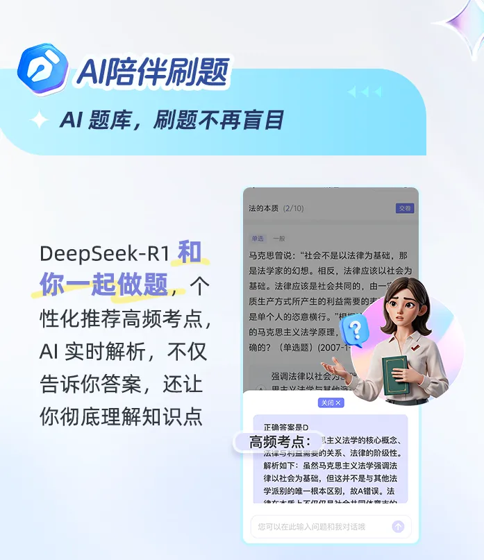 特点 | 智能题库,AI答疑,刷题更具针对性。