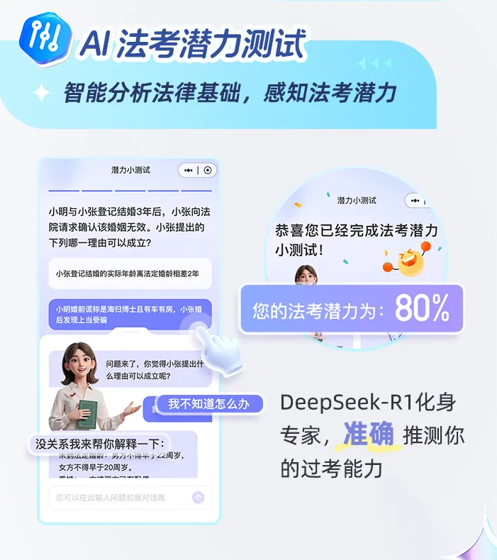 特点 | 帮助法考er了解自己的法律知识储备和逻辑思维能力。