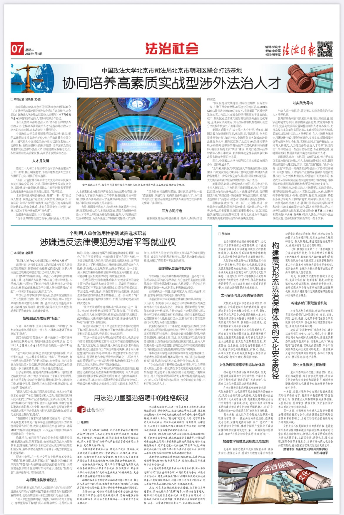 “三方协同打造朝阳基地,目标就是培养出一批‘德法兼修、明法笃行’的高素质涉外法治人才,为中国式现代化行稳致远提供全面的涉外法治智力支持和有力保障。”姜泽廷说。