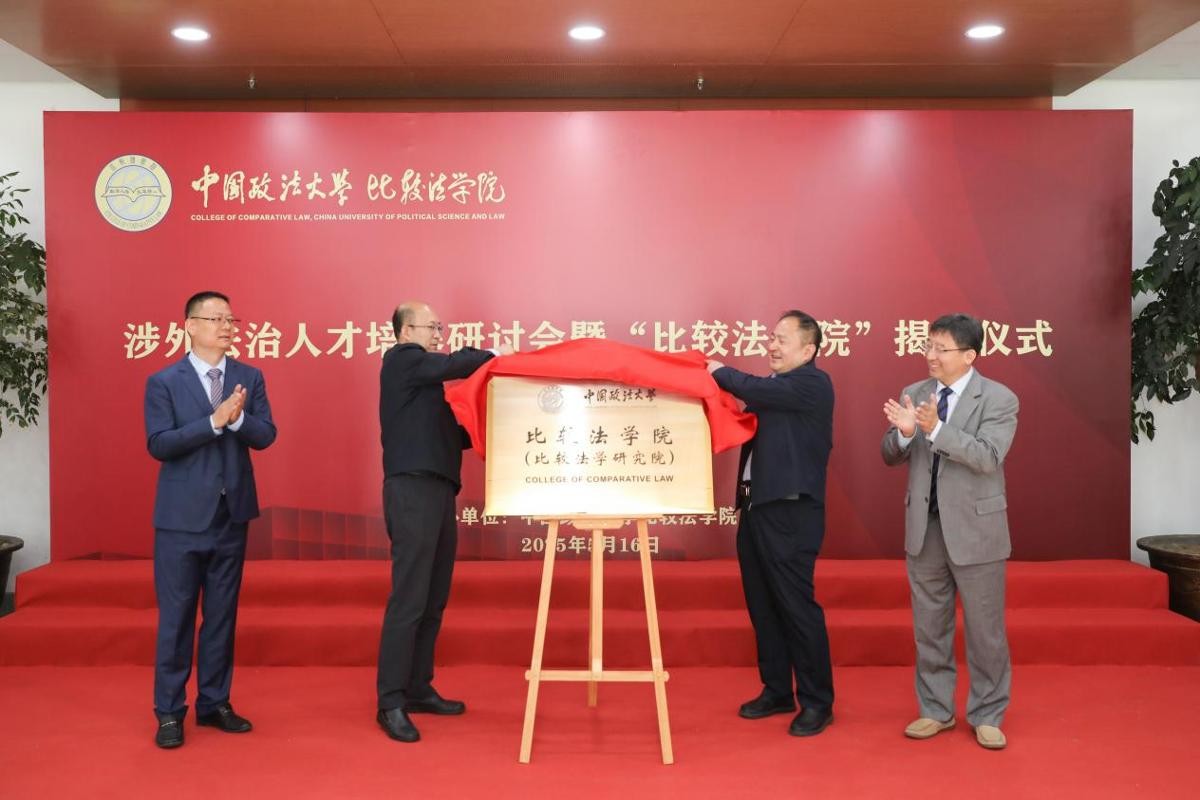 (我校涉外法治人才培养研讨会暨“比较法学院”揭牌仪式举行 摄影 尹建峰)5月16日,涉外法治人才培养研讨会暨“比较法学院”揭牌仪式在海淀校区举行。我校党委书记姜泽廷、校长马怀德、党委副书记黄瑞宇,对外经济贸易大学副校长梅夏英出席会议;北京大学、清华大学、北京航空航天大学、北京理工大学、北京师范大学、北京外国语大学、中央财经大学等兄弟高校法学院相关领导,我校相关部门负责人,比较法学院全体教师、学生代表参加会议。