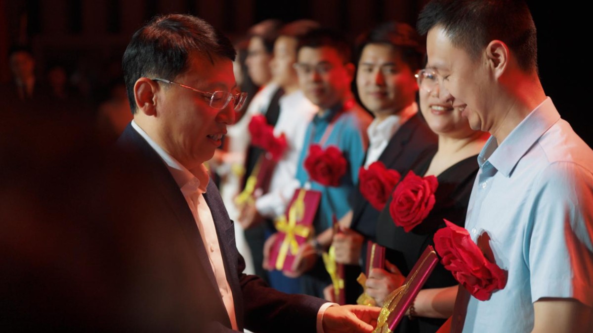 (姜泽廷为优秀校友颁奖)晚会上,姜泽廷和黄瑞宇先后为丁生杰等年度优秀校友、王秀锦等年度优秀校友工作者颁奖。通过颁奖环节,在座师生充分感受到了法大人在各领域践行法治信仰的壮阔图景。据悉,本届获奖者中,有在最高人民法院工作的审判专家,有参与国际经贸规则制定的涉外谈判代表,还有扎根边疆传递司法温情的“法治蒲公英”。他们以“厚德、明法、格物、致公”的校训精神,将法治理想化作万家灯火的平安守护,将专业智慧转化为改革攻坚的破局利刃。