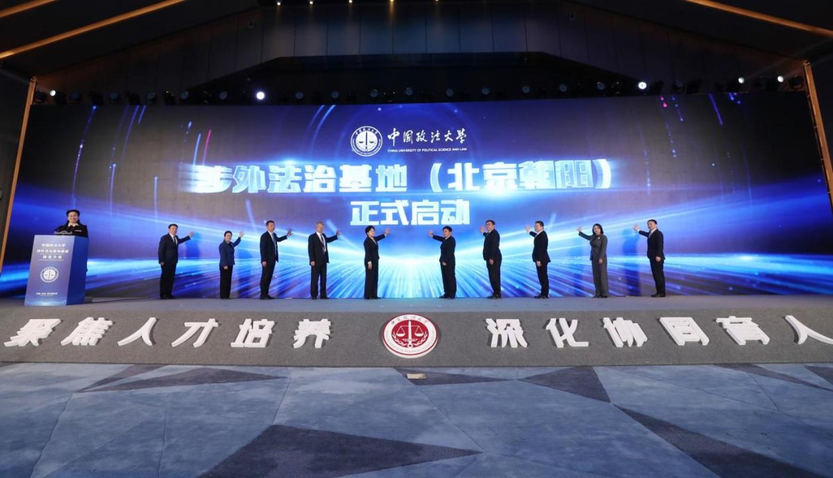 (中国政法大学涉外法治基地(北京朝阳)启动仪式)加强协同育人,构建“政产学研用”协同机制,在实践中践行习近平法治思想。学校与海淀区、昌平区开展“法治海淀”“青枫绘昌·共治启航”实践育人协同行动,来自法大的百余名学生走上两区的基层实践岗位,担任实习法官、检察官助理、基层政府部门法务助理、基层街道和乡镇“法治助理”、中小学法治副校长助理、法治辅导员等,在校地融合发展的基层实践中践行和传播习近平法治思想。在依法治疆研究院,法大师生把反恐维稳、国家安全的法治实践谱写在新疆大地上,面向中亚、面向西方,展现习近平法治思想的强大生命力和凝聚力。在海南自由贸易港法治研究院,法大师生把中国特色的自贸港法治理论体系谱写在中国式现代化的海南篇章之中,在海南高水平对外开放过程中彰显习近平法治思想的国际影响力。依托中国政法大学涉外法治基地(北京朝阳),学校积极开展涉外法治人才“订单式”分类培养,“实战型”素质培养,在涉外法治的舞台上体现习近平法治思想的实践伟力。