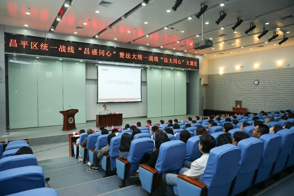 5月23日,由我校统战部与昌平区委统战部联合举办的昌平区统一战线“昌盛同心”(第三期)大课堂暨中国政法大学统一战线“法大同心”(第一期)大课堂在我校昌平校区刘皇发报告厅开讲。昌平区委常委、统战部部长郭清尧,校党委副书记王立艳出席。昌平区各民主党派、区工商联和各统战社团的民营企业家代表,昌平区委统战部、区工商联机关代表,我校党外知识分子代表等130余人参加。大课堂由昌平区委统战部副部长张学广主持。