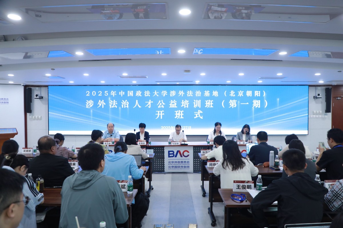 [2025年中国政法大学涉外法治基地(北京朝阳)涉外法治人才公益培训班(第一期)开班式]为推进落实《朝阳基地三年行动计划》,加强涉外法治人才培养,5月27日上午,2025年中国政法大学涉外法治基地(北京朝阳)涉外法治人才公益培训班(第一期)开班式在北京仲裁委国际会议厅举行。北京市司法局党委委员、副局长、一级巡视员张国强,我校副校长刘艳红,北京仲裁委员会委员兼秘书长姜丽丽,朝阳区司法局副局长、朝阳区律协党委书记邸静出席开班式并致辞。仪式由中央政法培训学院执行院长、继续教育学院院长宋乃龙主持。来自北京市司法局和朝阳区司法局选派的学员代表,学校合作各大企业、律所、仲裁机构代表等业内人士参加培训学习。