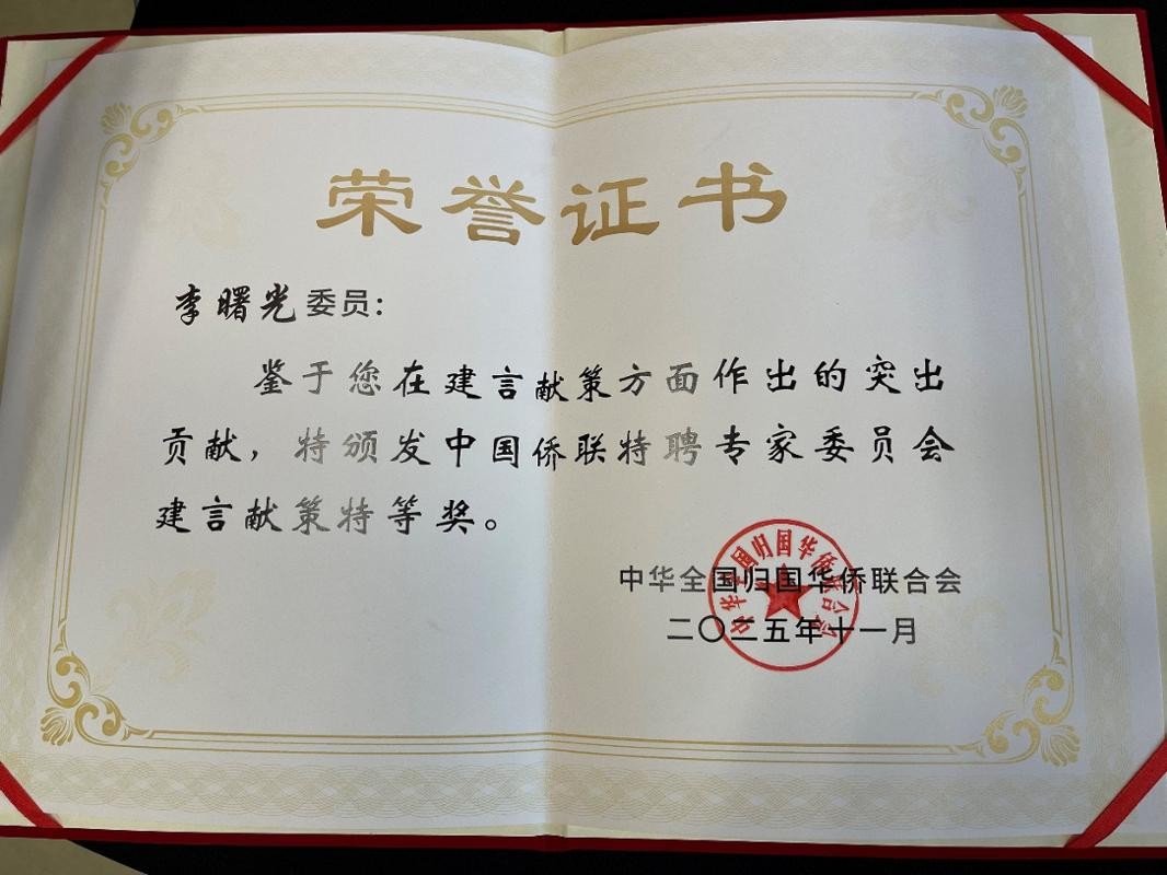 12月1日,2025年中国侨联特聘专家委员会年度交流活动在厦门成功举办,本次活动汇聚中国侨联特聘专家委员会成员、海外专业社团代表等120位嘉宾参会,共商侨智赋能高质量发展大计。中国侨联副主席程红出席会议并致辞,我校侨联主席李曙光作为中国侨联特聘专家委员会副主任兼秘书长主持会议。会上颁发了2025年特聘专家委员会建言献策奖,李曙光荣获“中国侨联特聘专家委员会建言献策特等奖”。从2015年至2025年,李曙光已连续十一年荣获“中国侨联特聘专家建言献策特等奖”。