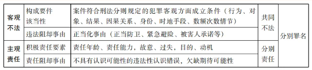 共同犯罪的核心内容: 共同不法 (不法是共同的,责任是分别的 )