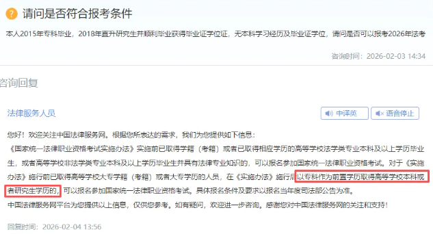 02 重点提醒需以2018年4月28日前的专科作为前置学历,取得高等学校本科或者研究生学历。