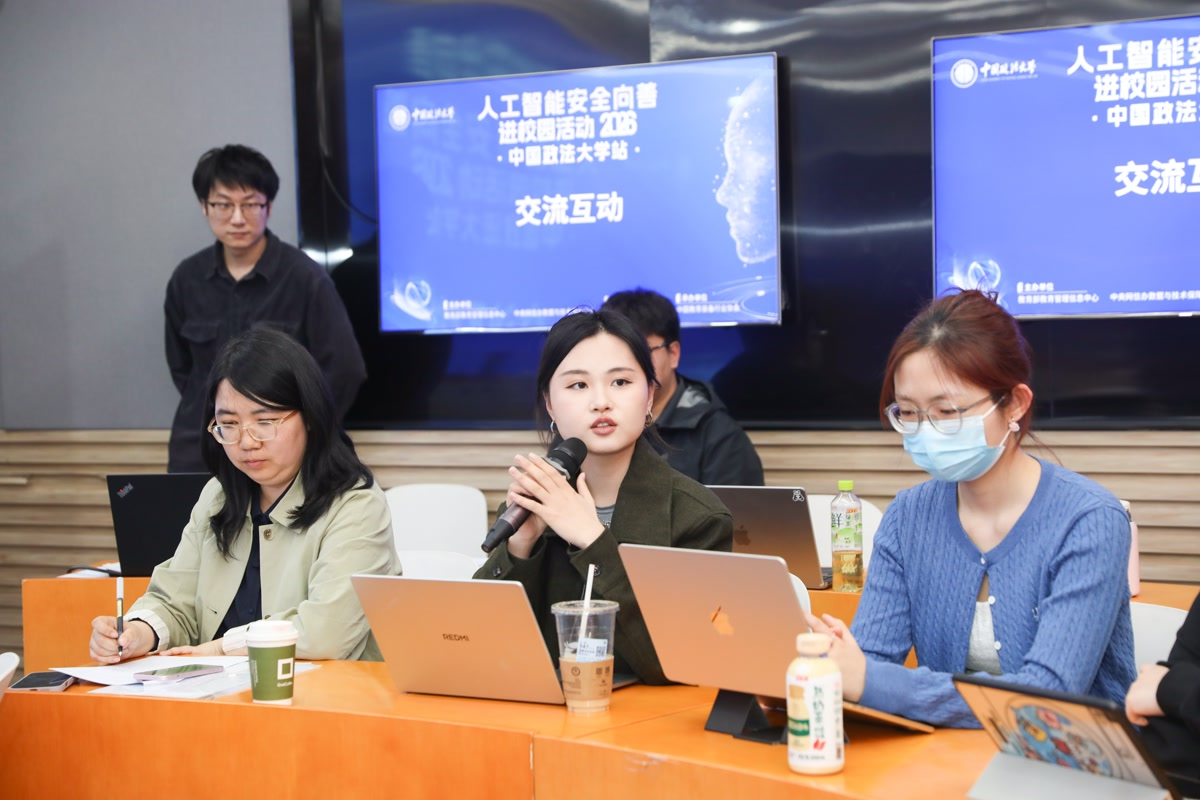 在交流互动环节,与会师生围绕AI安全风险防范、校园应用落地、人才培养等问题深入探讨,现场气氛热烈。