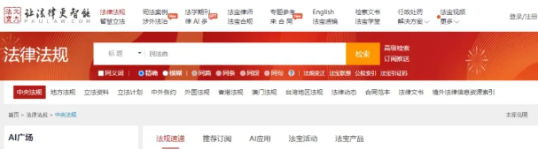 北大法宝的主要用途就是法律法规。这里有着较全的法律法规,也会实时更新相关信息。同学们可以在这里分门别类地查询法律法规、法学期刊。