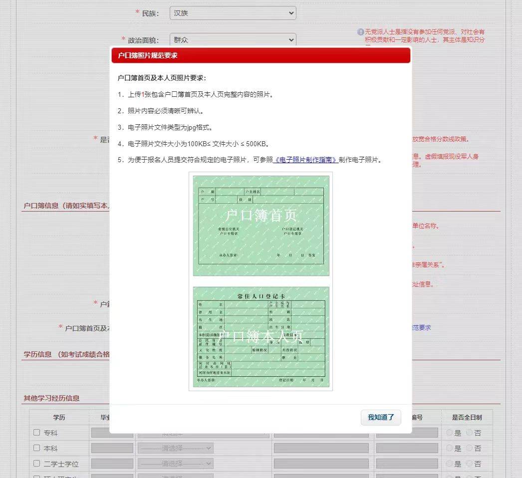选择享受放宽政策的,会要求上传户口簿的首页和本人页照片,这两页要放在同一张照片上!