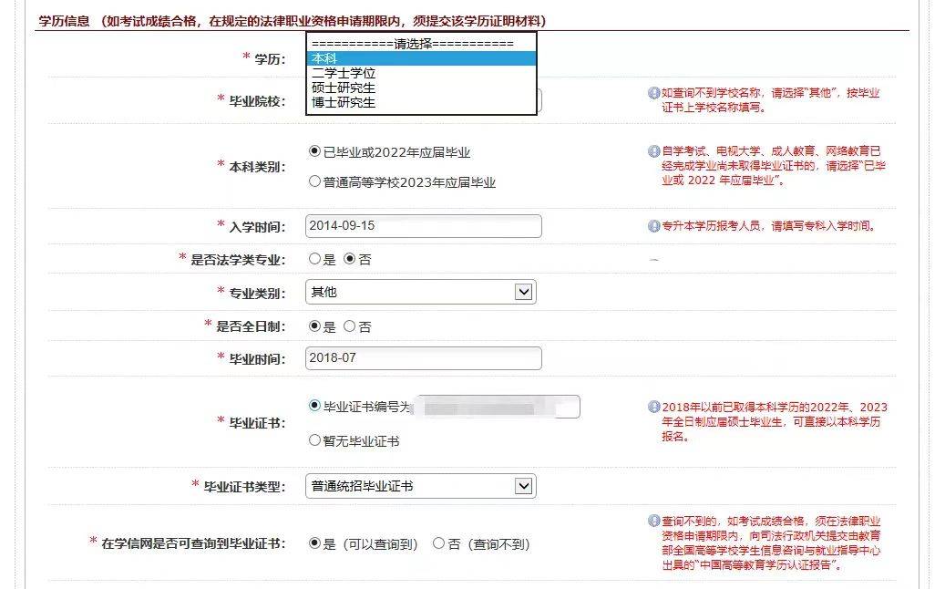 根据自己的情况,如实填写即可。2018年以前已取得本科学历的2022年、2023年全日制应届硕士毕业生,可直接以本科学历报考!