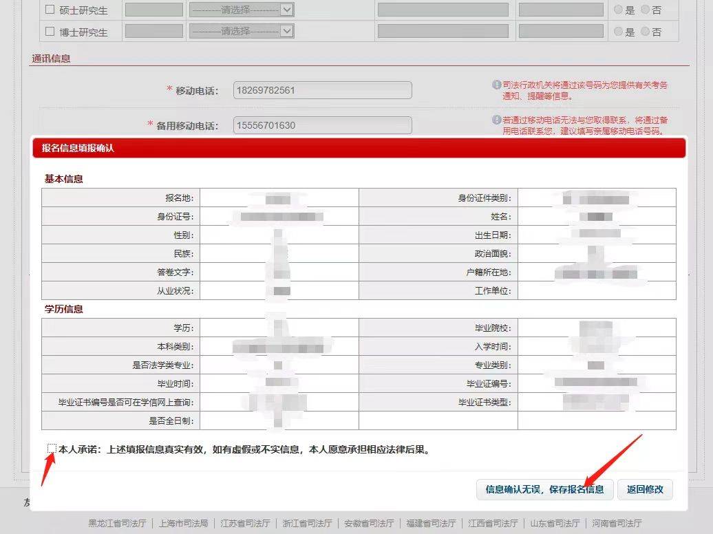 进入报名信息填报确认,并点击“信息确认无误,保存报名信息”。