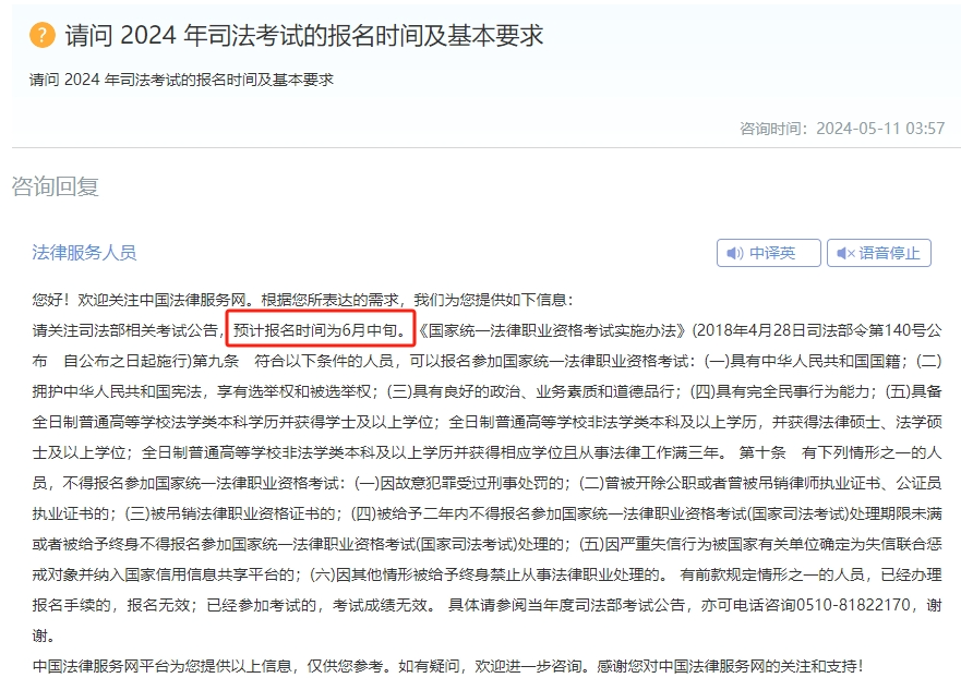 请问2024 年司法考试的报名时间及基本要求?